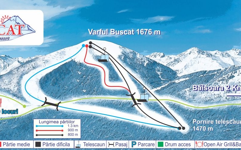 Partia de ski Buscat 1 este situata la aproximativ 2,5 km de Baisoara si 54 km de Cluj-Napoca. Are un grad mediu de dificultate si o lungime de 1,3 km.